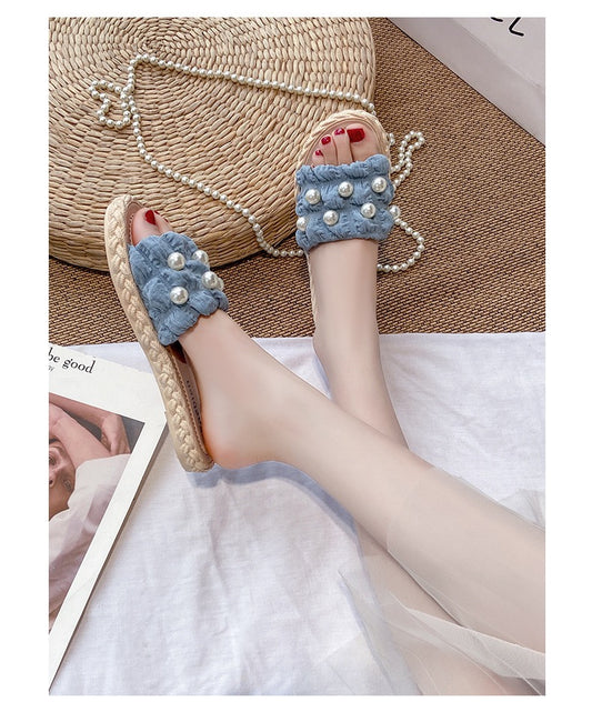 Boho Ethnic Blue Sandals – Women’s Beaded Woven Slides