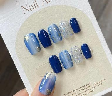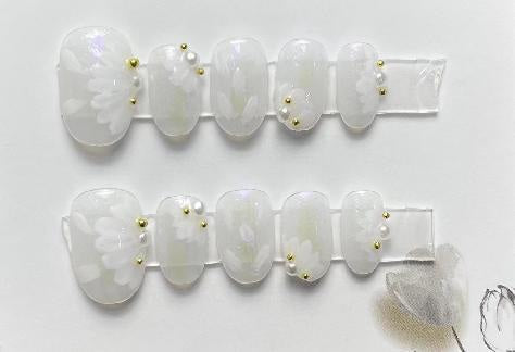 Ocean-Inspired Handmade Press-On Nails – 3D Carved Floral Embossed Design, Fully Hand-Painted.