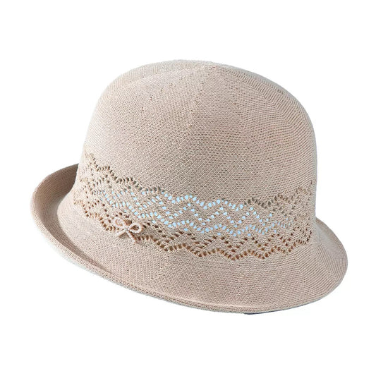 Elegant Knit Roll-Brim Sun Hat – Breathable Summer Cloche Hat for Women | Fashionable Outdoor Travel Hat