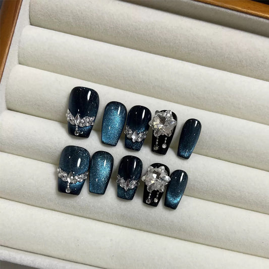 Miss Berg Royal Sapphire Cat Eye Press-On Nails | Luxury Court-Style Design