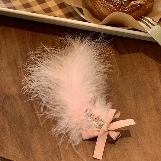 Elegant Feather Bow Hair Clip – Aesthetic Duckbill Clip for Women, Party Side Hair Barrette