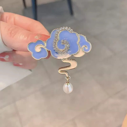Elegant Chinese Style Cloud Hair Clip – Retro Pearl Duckbill Clip for Women, Side Bang Clip for Thin Hair