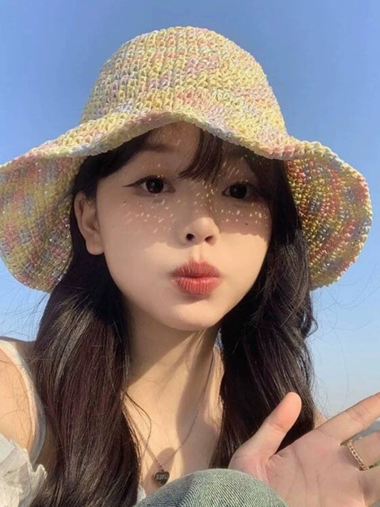 Dopamine-Inspired Woven Sun Hat – Wide Brim Bucket Hat | Summer UV Protection & Face-Slimming