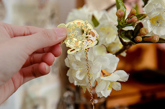 Elegant Chinese Enamel Metal Bookmark – Golden Chain Series (Panda / Rabbit / Koi / Fox)