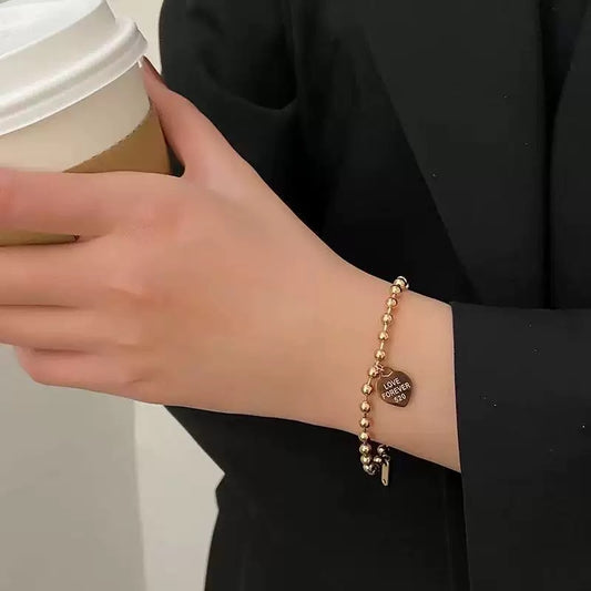 Minimalist Titanium Steel Bead Bracelet – Heart Tag Design, 520 Gift Idea (16cm + 3.5cm Extender)