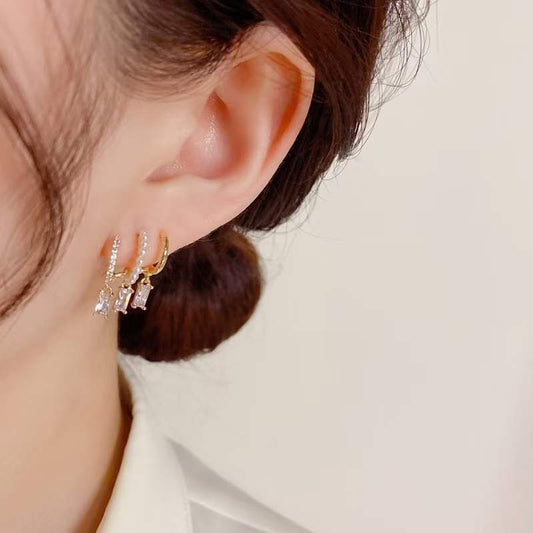 Green Oil Drop Pearl Crystal Earrings (Real-Gold Plating)