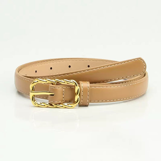 Elegant Twist Chain Buckle Belt for Women – PU Leather Waist Belt, Gold Alloy Pin Buckle, Casual Slim Dress or Blazer Accessory