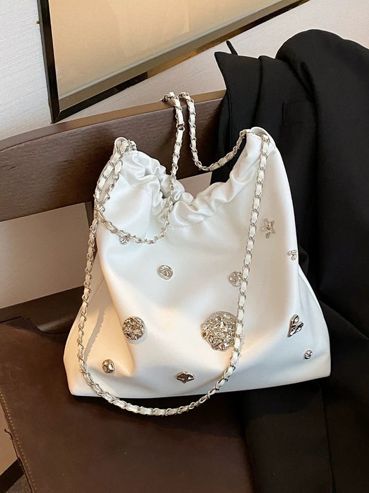 Metallic Chain Bucket Bag – Korean Style Small Shoulder Purse