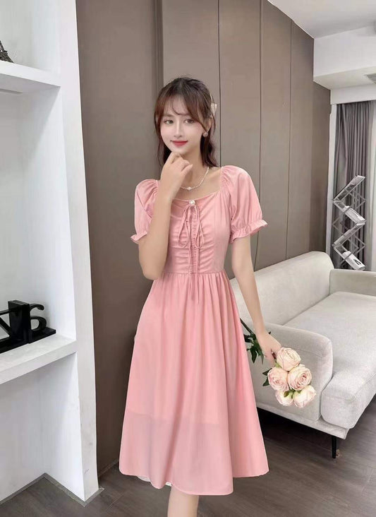 Hepburn Style French Bubble Sleeve Dress(2 color option)
