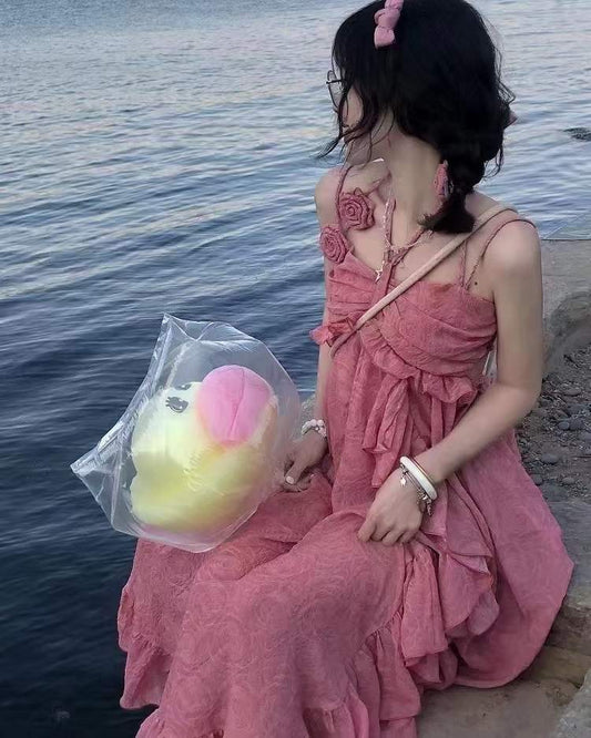 "Summer of Roses" Vacation Style Halter Irregular Skirt(2 colors optional)