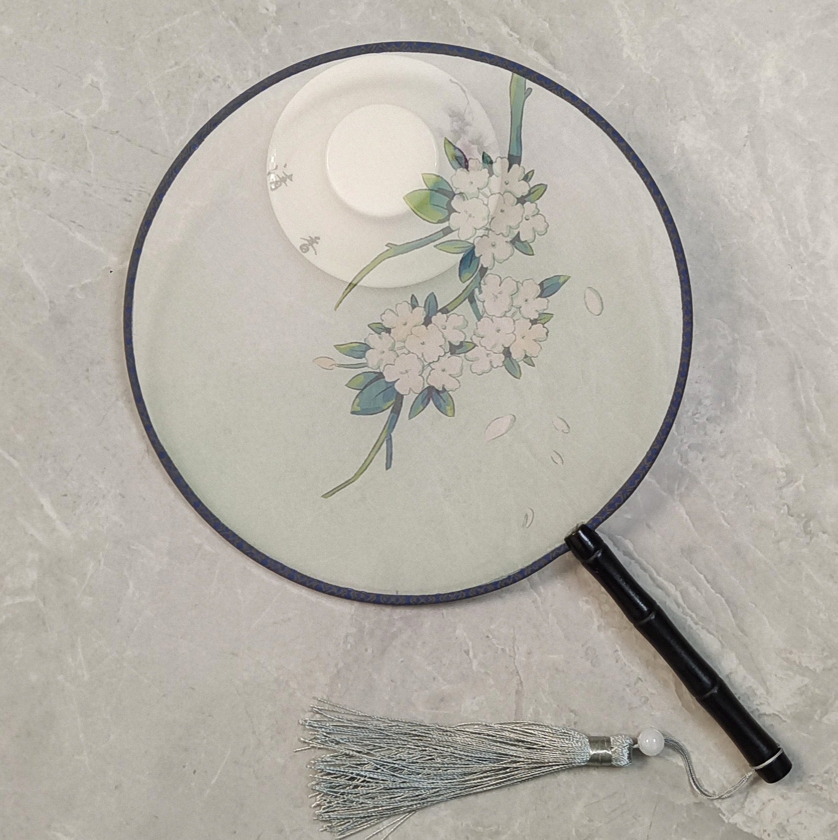 Silk Semi-Transparent Chinese Round Fan | 21cm Floral Fan Surface | 15cm Handle | Hanfu Photo Prop | Classical Vintage Style